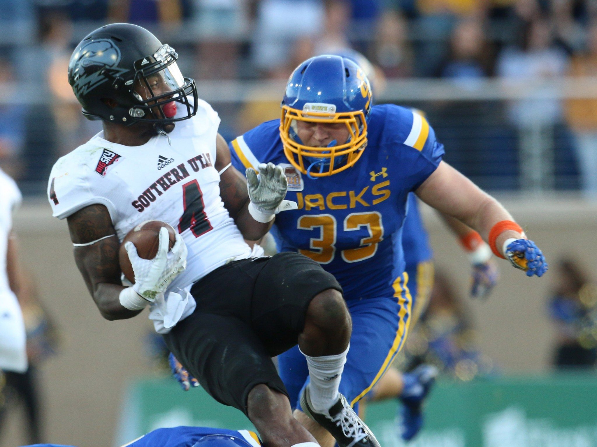 South Dakota State’s defense stuffed Chase Reynolds and the UM offense in the first quarter, building a 14-0 lead. UM battled back as Tyler Palmer’s 25-yard touchdown pulled the Griz within three, 17-14. But SDSU seized the momentum once again as Colin Cochart scored his third touchdown, Kyle Minnet turned a Conrad Kjerstad touchdown into another score and Montana quarterback Andrew Selle’s fumble turned into a field goal as SDSU took a 34-14 lead into halftime.