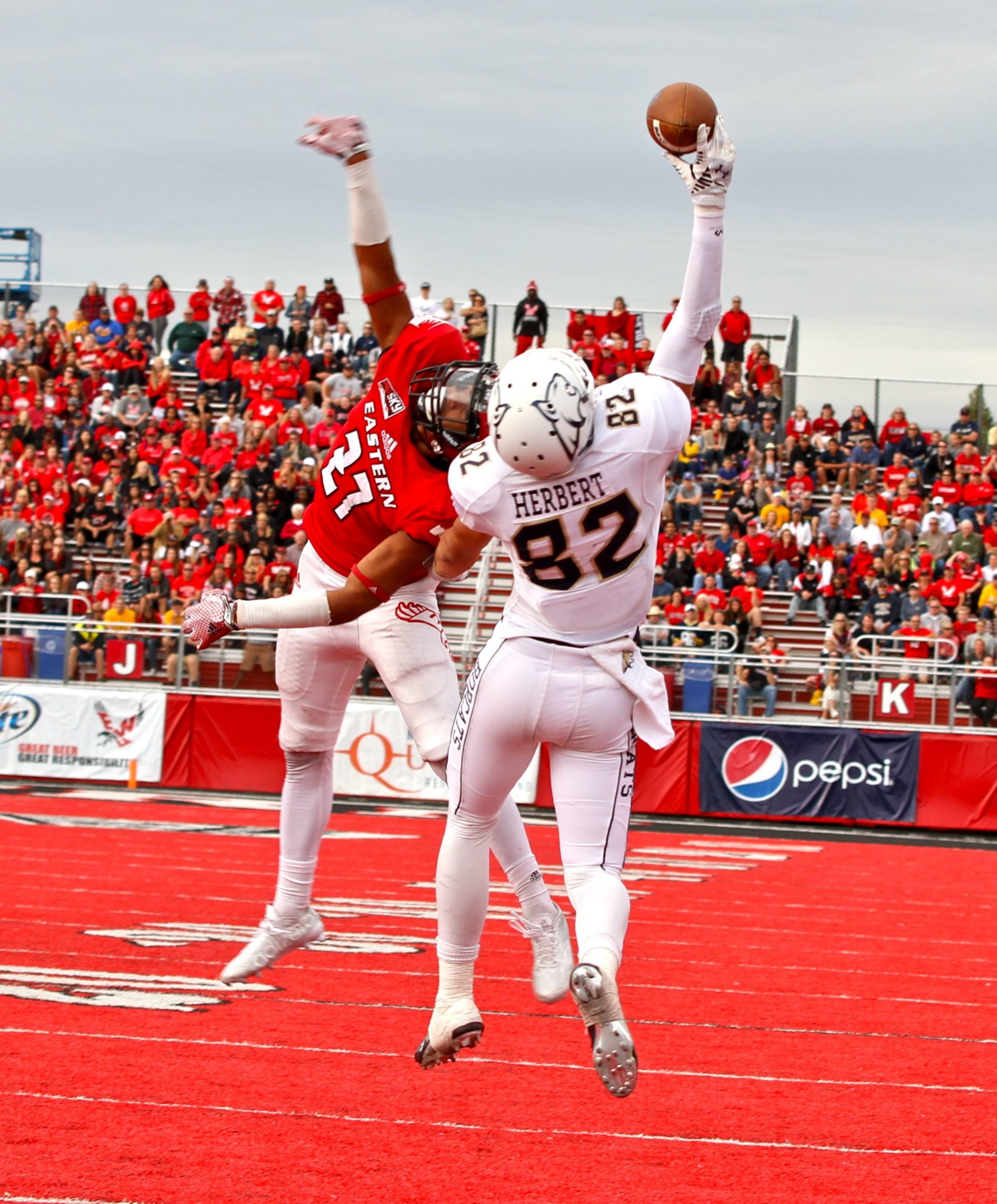 The torrid comeback featured a pair of highlight touchdowns that will be hard for Prukop or anyone in the Big Sky to top. Trailing 41-24 with 3:07 left in the third quarter, Ebukam flushed Prukop on a fourth down and 10 from the EWU 22. Prukop scrambled right, looked to get up field, crossed the line of scrimmage, realized he had open turf to the right, stopped on a dime, ran back behind the line to his right, looked up field before finally lofting a pass to a wide open Gunnar Brekke for a touchdown. On MSU’s final possession, Prukop found Herbert, who made a catch that’s becoming customary for the 6-foot-4 sophomore out of Eugene, Oregon.