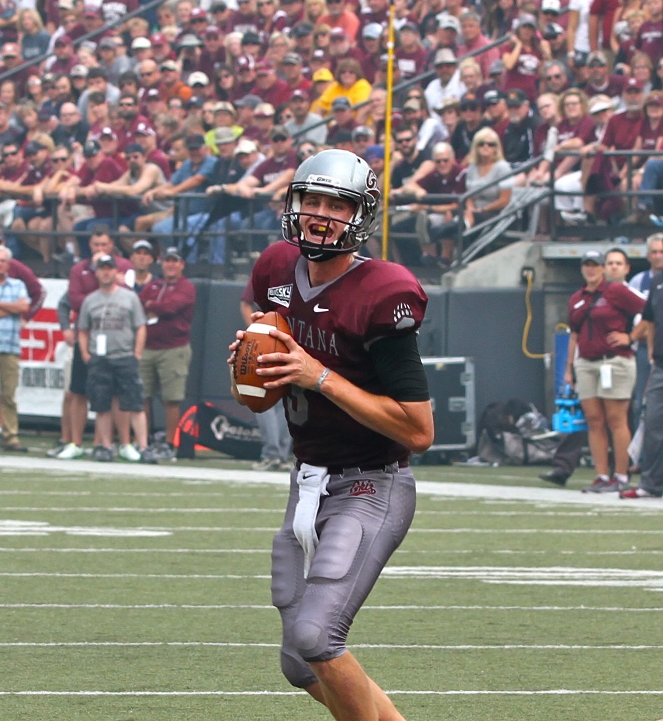 Although the atmosphere lived up to all expectations as UM hosted the first college football game of 2015, the pressure behind the powerhouse matchup never seemed to get to Montana first-time starter Brady Gustafson. The 6-foot-7 fourth-year junior out of Billings West operated Stitt’s up-tempo offense at an unyielding pace. He ended his first college start with 434 yards passing and three touchdowns.