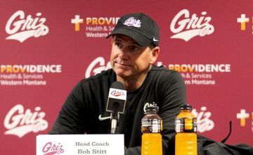 Montana head coach Bob Stitt and senior offensive tackle Mike Ralston address the media following UM’s 41-27 loss at Weber...