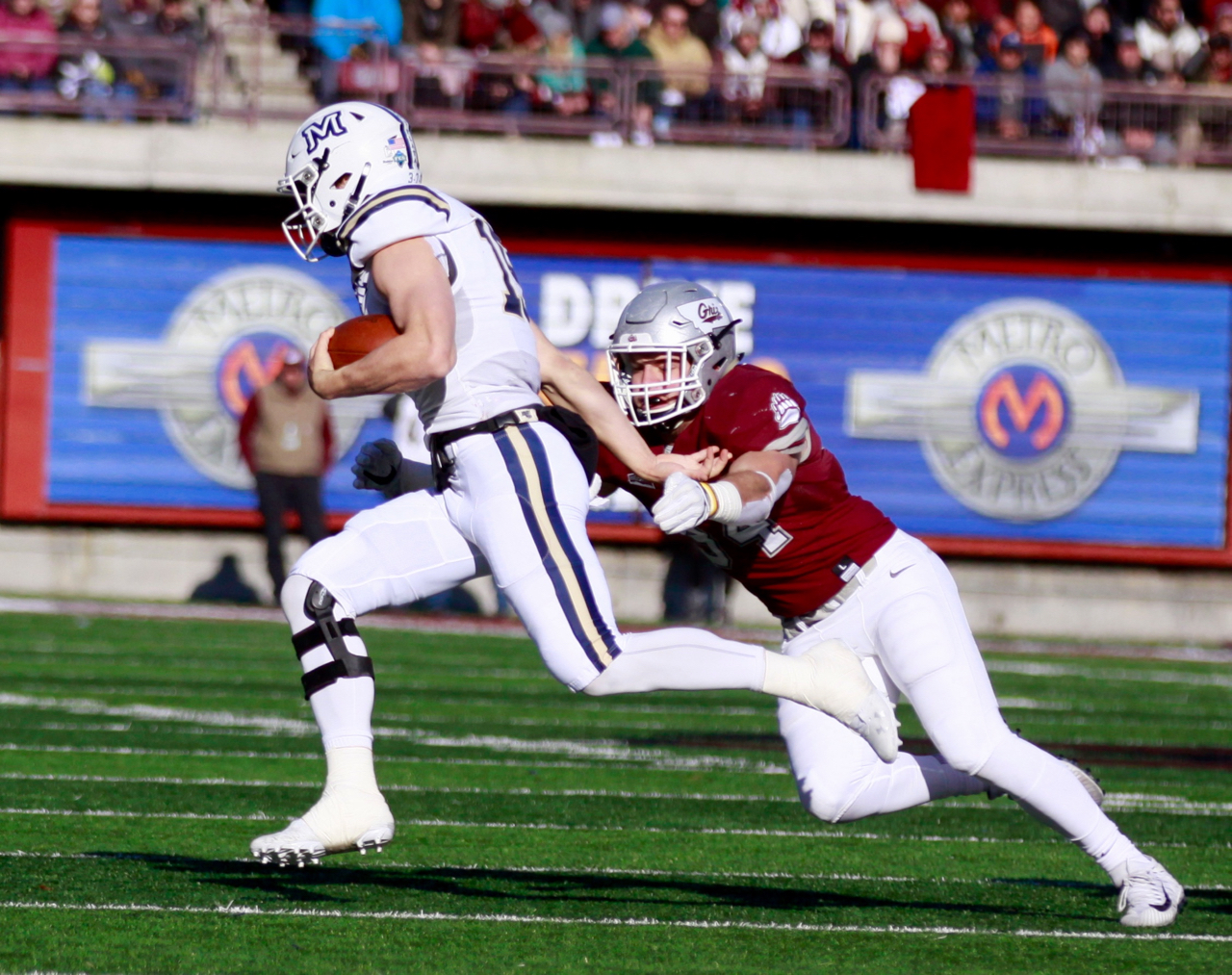 The play of fifth-year senior inside linebacker Grant Collins’ career sparked the epic momentum swing. The Bozeman native smacked Sneed on the Griz sideline, forcing a fumble and recovering it in one motion to give Montana State possession on the Griz 35 with 5:16 left.
