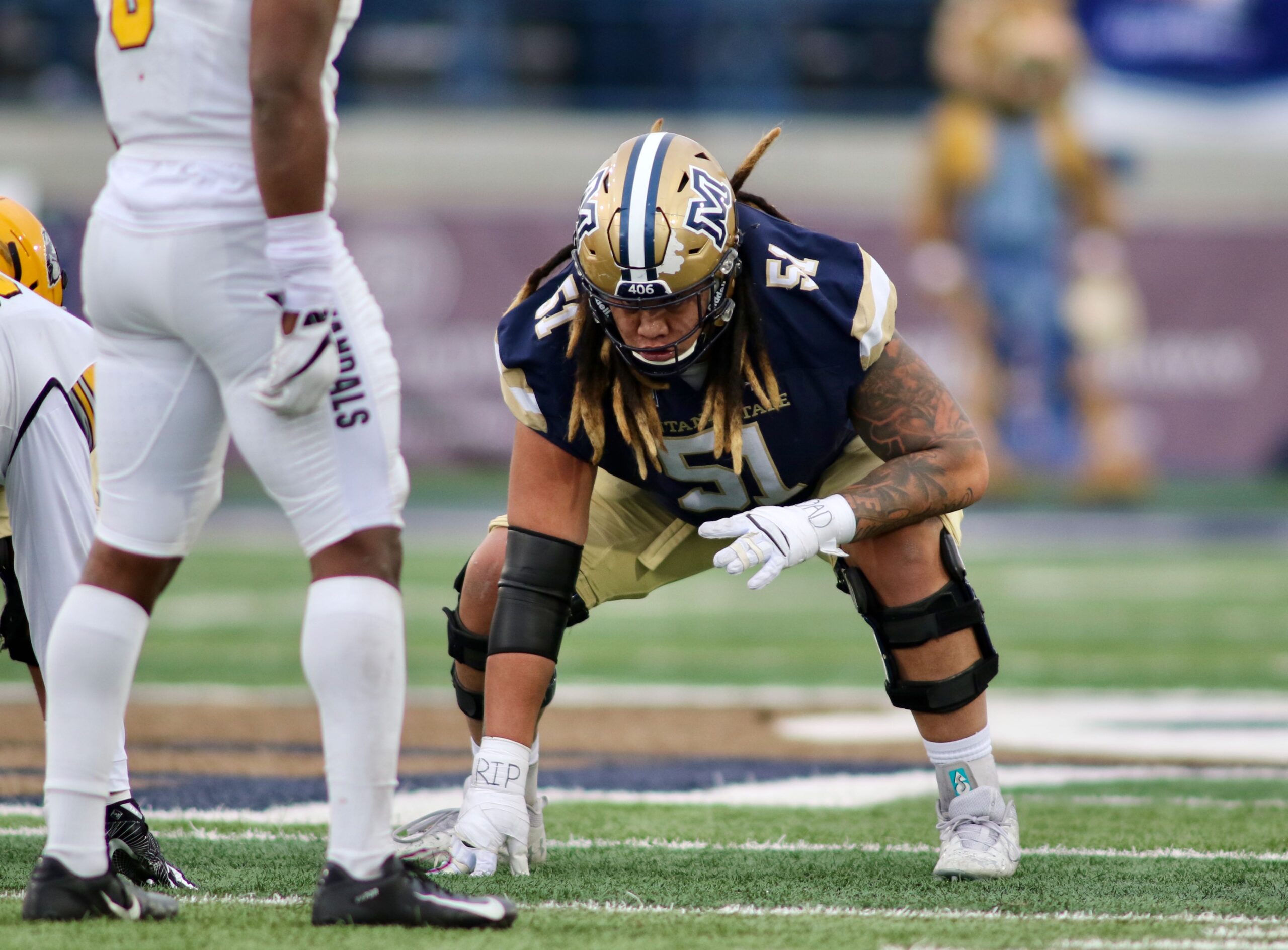 The instantly recognizable Montana State senior offensive lineman — Tuiasosopo is impossible to miss both because he is 6-foot-4 and 310 pounds with flowing dreadlocks and because of the energy he projects to those close to him — dropped to one knee in the center of Bobcat Stadium all alone.
