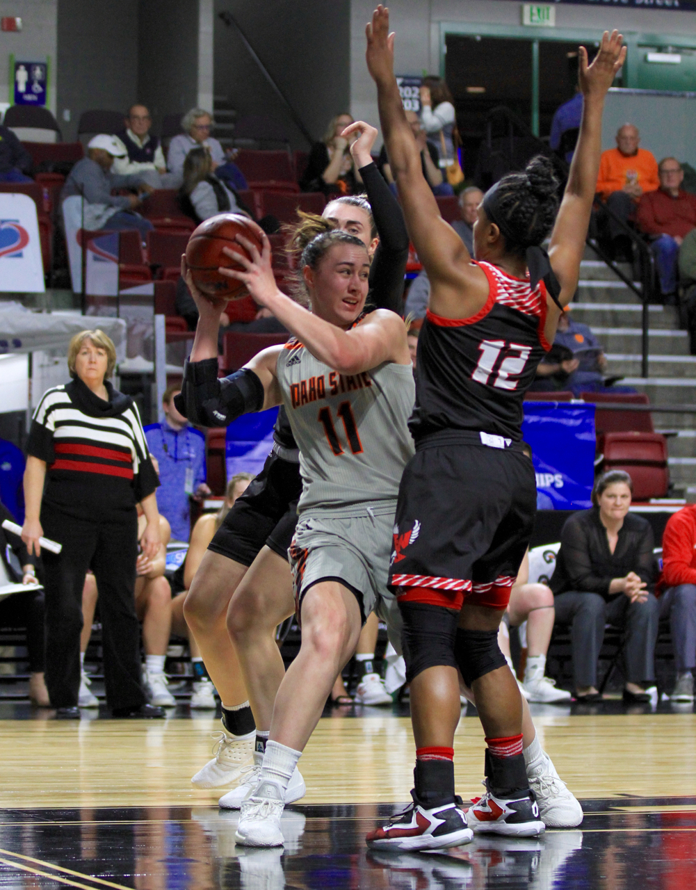 Even without the services of third-team All-Big Sky wing Kayleigh Paplow, Regan Schenck and the eighth-seeded Lumberjacks hung tough with the regular-season Big Sky champions early. Coming off a 74-69 victory over Sac State in the first game of the tournament in which Paplow went down with an ankle injury, the Lumberjacks built a 21-20 after the first quarter.