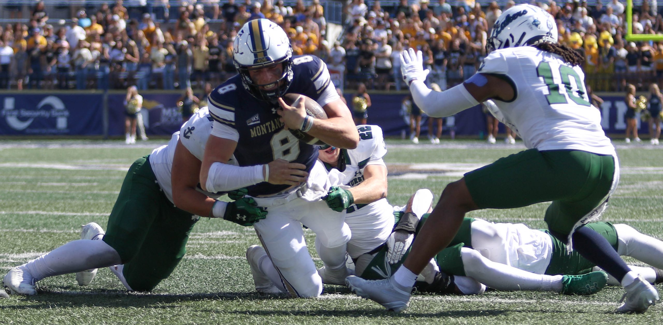 MSU hummed down the field on its first possession and scored on a short run by Julius Davis, who had another solid day with nine carries for 55 yards. The Bobcats were poised to strike again on their next possession only to see the game start to morph after reaching the one-yard line. Quarterback Justin Lamson uncharacteristically made three straight mistakes when he kept the ball and lost four yards, then threw the ball into the ground with a wide-open tight end Rocky Lencioni striding into the end zone and then overthrew wide receiver Taco Dowler.