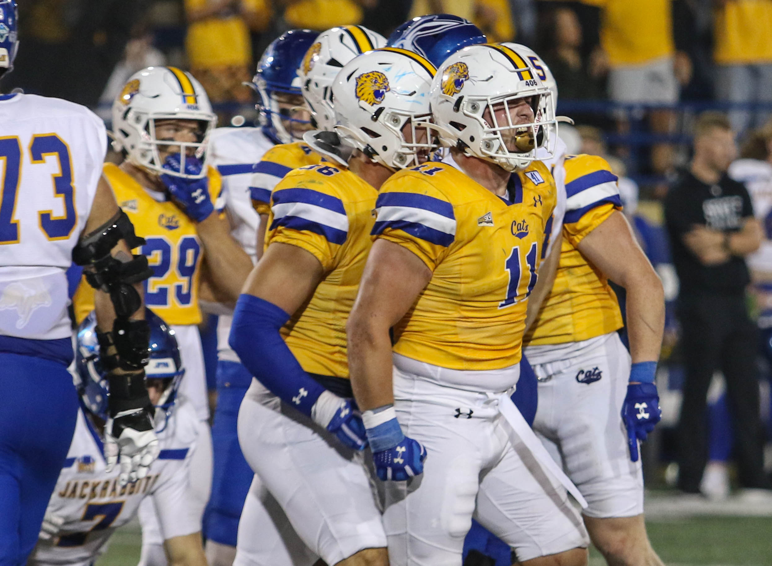 MSU’s top asset is likely its stamina, which isn’t just conditioning but also by design. Having eight players rotate throughout the game means that they’re not going to get worn down like so many defensive fronts do, especially if the opposition is keeping them on the field. Tired defensive lines equate to allowing opposing offenses the ability to run and control the ball and clock when the fourth quarter rolls around. That hasn’t happened to MSU. In fact, of the four touchdowns the Bobcats have allowed during regulation in the last five games, only one has occurred in the second half, and that was in a game they led 38-0 in the fourth quarter against San Diego.