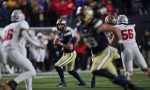 No. 2 Montana State linebacker Bryce Grebe leads a press conference before MSU head coach Brent Vigen and wide receiver Taco Dowler following MSU’s 48-23 win over No. 3 Montana on Saturday afternoon in Bozeman.